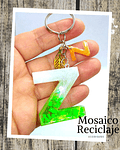 Llaveros hechos con el reciclaje de BOTELLAS PLÁSTICAS encapsuladas en lindas letras ,